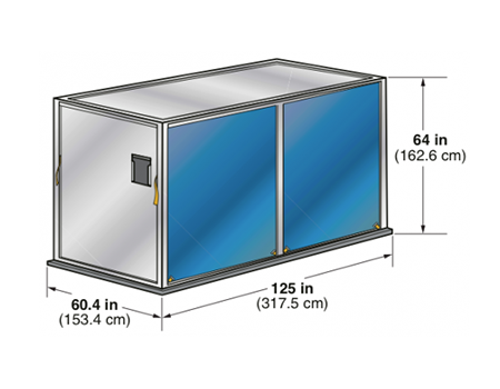 Full-width lower hold container. Door is canvas. Center post swings clear for loading. Refrigerated version has solid door.