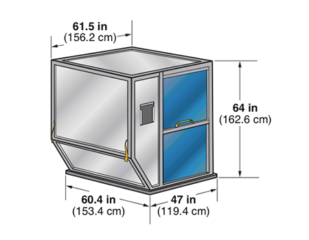 Half-width lower hold container with one angled side. Door is either canvas or solid.
