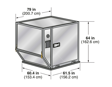 Half-width lower hold insulated container with one angled end. Door is solid. Most examples are forkable.