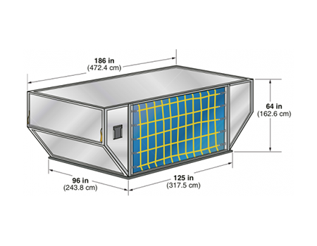 Full-width lower hold container angled at both ends. Door is canvas with built-in net door straps.