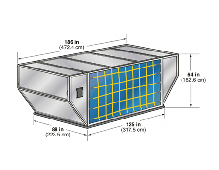 Full-width lower hold container with angled ends. Door is canvas with built-in door straps.